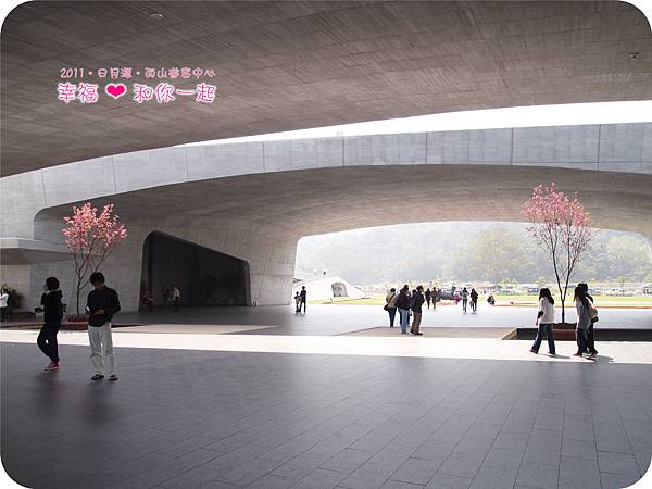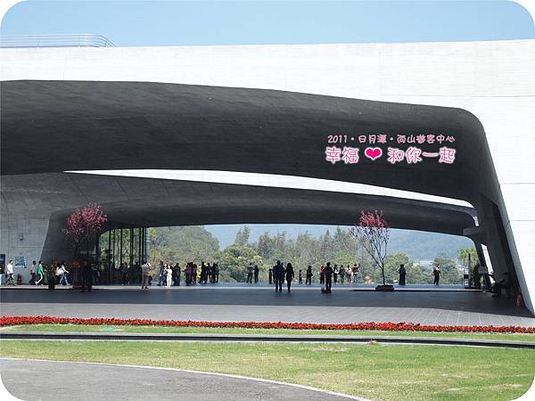 建築設計理念以環抱日月潭為意象,2側建築彎曲手臂擁抱著形成了此開放空間