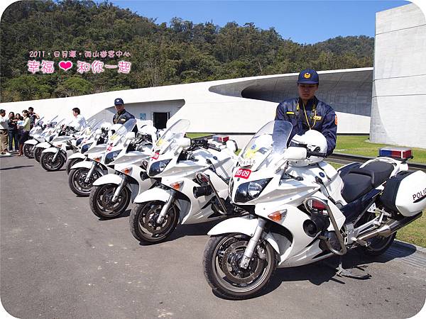 另外Q妮遇到了一個非常有趣的一件事,就是10幾台重機警車集體出現在這~