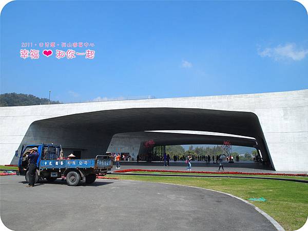 遊客中心,花3億建造,由國際知名日本建築師「團紀彥」設計, 外牆打破傳統水平垂直線條,挑戰曲面的木紋清水模