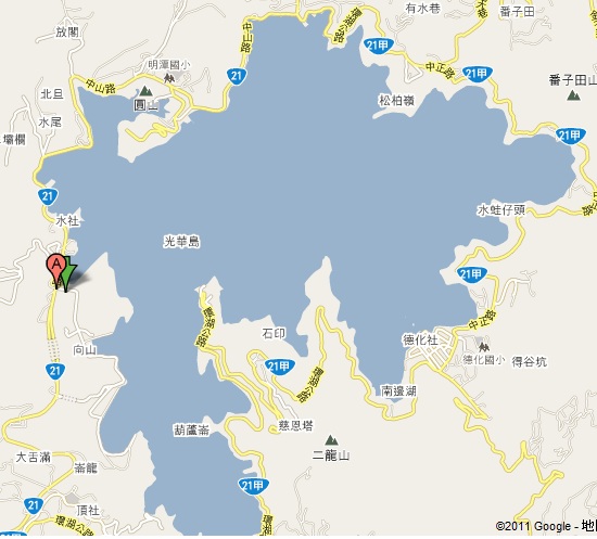 位置: 水社再過去一點, 於向山隧道前~它很顯眼!